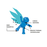 Componentes: Set de 5 figuras magnéticas con cabezas giratorias, manos y pies flexibles, y bases magnéticas para una interacción dinámica y versátil.